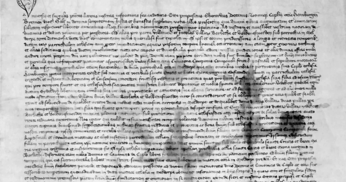 „Allen und jedem, die unsere vorliegende Urkunde lesen oder hören, wünschen wir, der Propst Otto, der Dekan Gerhard und das gesamte Domkapitel der Hamburger Kirche in der Diözese Bremen beständiges Heil des Herrn.